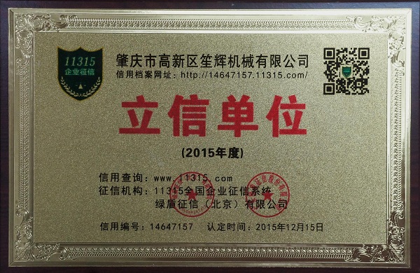 笙輝獲得11315全國企業(yè)征信系統(tǒng)立信單位