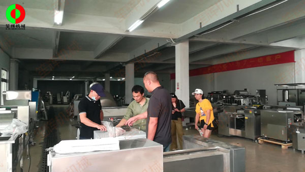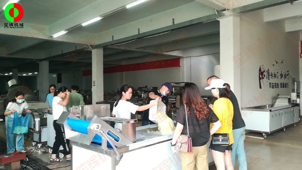 客戶親臨我司考察,測(cè)試蔬果切割清洗等設(shè)備!