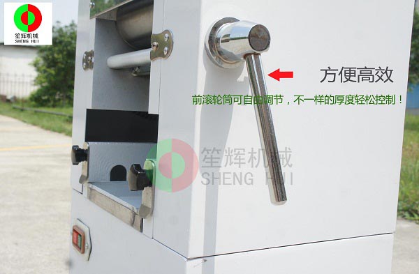 6、只需要調(diào)節(jié)把手即可平行移動(dòng)壓面輥,防止面皮厚薄不一;