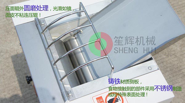 5、壓面輥全部經(jīng)過(guò)外圓磨處理,光滑如鏡,面皮不粘壓面輥;