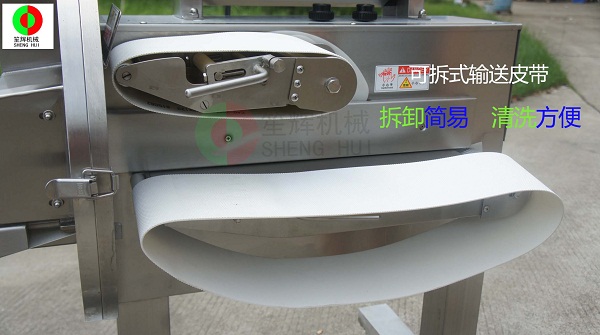 - 產(chǎn)品優(yōu)勢(shì): SH-120SD 型切肉機(jī),采用的刀片,堅(jiān)韌耐用;進(jìn)料和出料均采用輸送帶動(dòng)方式,皮帶拆卸和安裝都非常方便快捷,利于工作完成后對(duì)機(jī)器進(jìn)行清潔保養(yǎng);出料口采用平面皮帶輸送方式,物料切割完后可以整齊地輸送出來,能滿足下一步工序的操作。